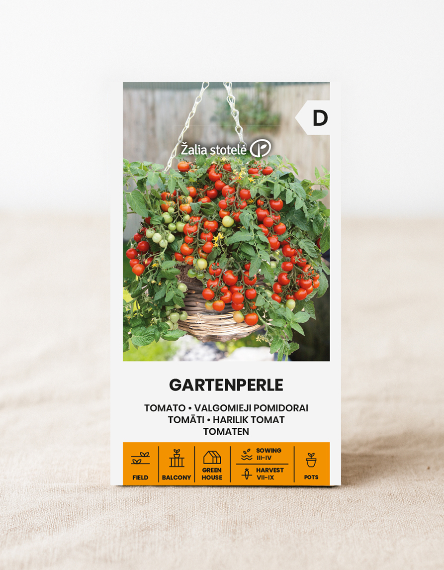 ‘Gartenperle’ on erittäin tuottava ja koristeellinen amplitomatum, joka sopii erinomaisesti parvekkeille, terasseille ja riippuruukkuihin. Kasvi muodostaa kauniisti riippuvia varsia, jotka ovat täynnä pieniä, makeita kirsikkatomaatteja. Sadot voivat nousta 2-3 kiloon kasvia kohti.