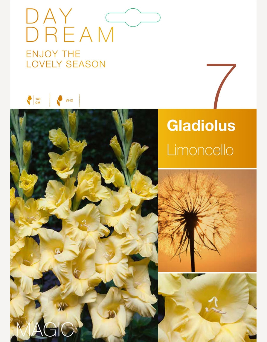 Gladiool ‘Limoncello’ on särav sort sidrunkollaste õitega, mis toovad aeda soojust ja värskust. Kõrged õievarred kasvavad kuni 140 cm kõrguseks ning sobivad suurepäraselt nii peenra taustataimeks kui ka efektseks lõikelilleks. Õitsemine kestab juulist septembrini, pakkudes kaua kestvat ilu.