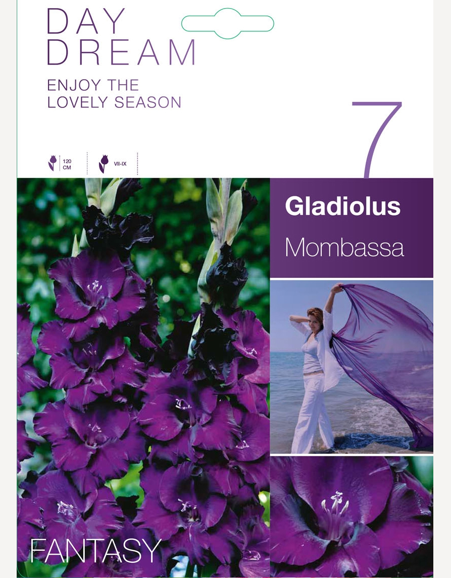 Gladiole ‘Mombassa’ on elegantti lajike, jolla on syvän violetinvioletit kukat. Vahvat varret kasvavat jopa 120 cm korkeiksi, ja ne sopivat hyvin kukkapenkkiin tai leikkokukaksi. Kukinta kestää heinäkuusta syyskuuhun, mikä tekee puutarhasta kesällä runsaan ja värikkään.