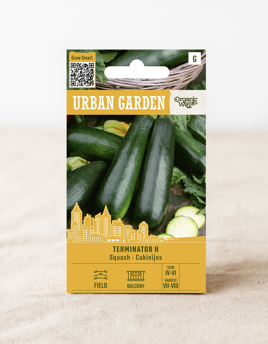 Kesäkurpitsa ‘Terminator F1’ on aikainen ja erittäin tuottava kesäkurpitsahybridi, joka sopii kasvamaan sängyssä, kasvihuoneessa tai isommissa ruukuissa parvekkeella. Kasvit ovat elinvoimaisia ja vastustuskykyisiä yleisimpiä tauteja vastaan, ja lehdet ja hedelmät ovat koristeellisen näköisiä.