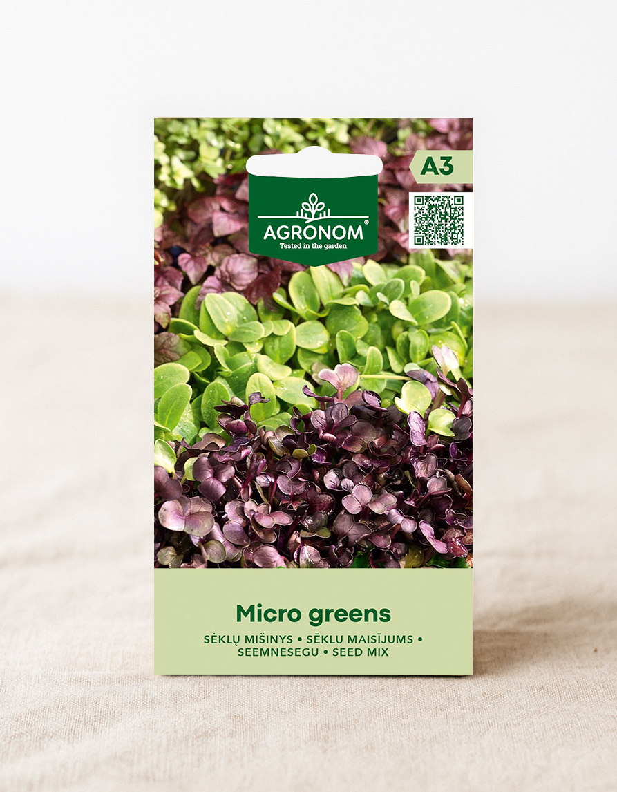 Siemenseos sisältää purppurakaalin ja retiisin siemeniä. Ne sopivat loistavasti salaatteihin, voileipiin tai yksinkertaisesti raikkaana lisänä päivittäiseen ruokavalioon.Seos on suunniteltu kasvatettavaksi ympäri vuoden - joko ikkunalaudalla, kasvihuoneessa tai kesällä ulkona sängyllä. Mikrokukat kypsyvät nopeasti, ja ne sopivat niille, joilla on vähän kokemusta puutarhanhoidosta.