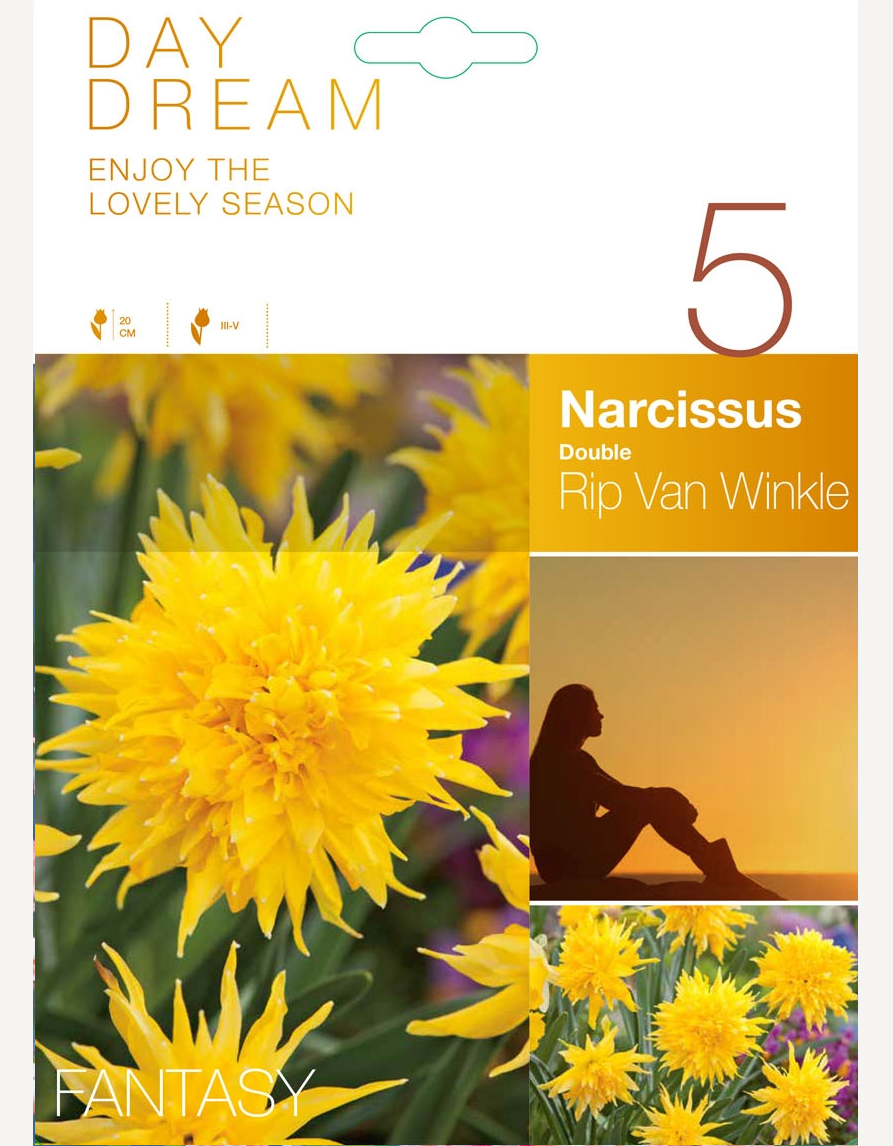 ‘Rip van Winkle’ on matalakasvuinen kääpiönarsissi, mutta vaatimattomasta korkeudestaan huolimatta se ei jää huomaamatta. Päinvastoin, se on todellinen puheenaihe kukkapenkissä. Tämä lajike on hurmannut puutarhureita jo yli sadan vuoden ajan, ja sitä arvostetaan juuri erikoisen kukkamuotonsa ja vanhan perinnelajikkeen viehätyksen vuoksi. Kompaktin kasvutapansa ansiosta se sopii erityisen hyvin kukkapenkin reunaan, kivikkopuutarhaan, ruukkuihin ja parvekelaatikoihin.