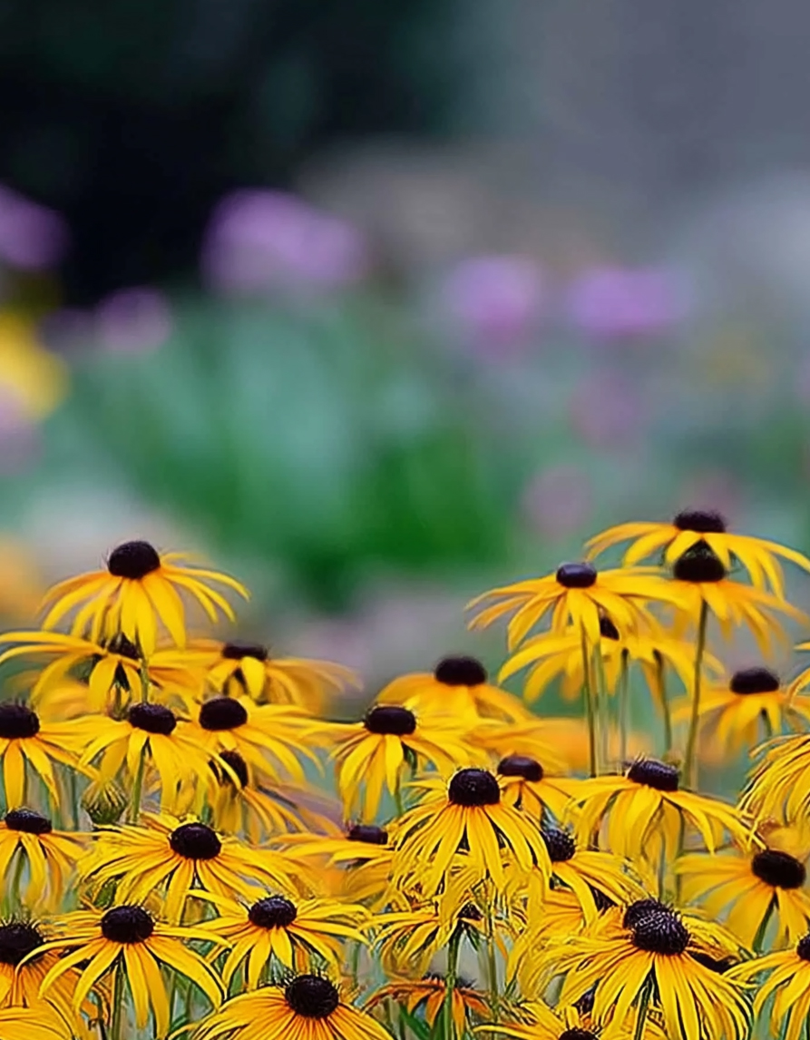 - Kukkia: kullankeltainen, tumma sydän