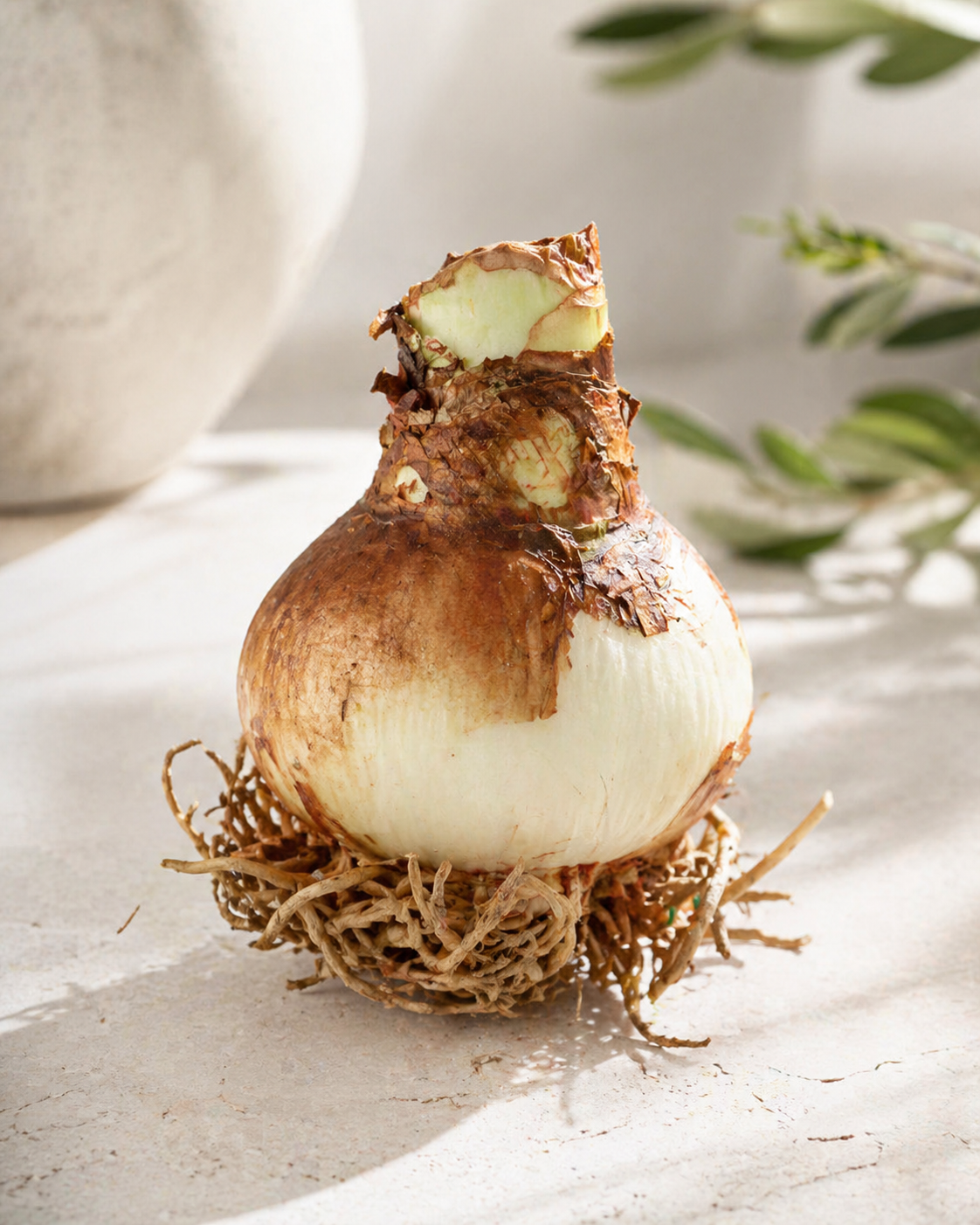 Valitse ruukku, jossa on pohjareiät ja joka on vain hieman sipulia suurempi. Käytä ilmavaa ja hyvin vettä läpäisevää multaa. Istuta sipuli niin, että noin 1/3–1/2 sipulista jää mullan pinnan yläpuolelle.