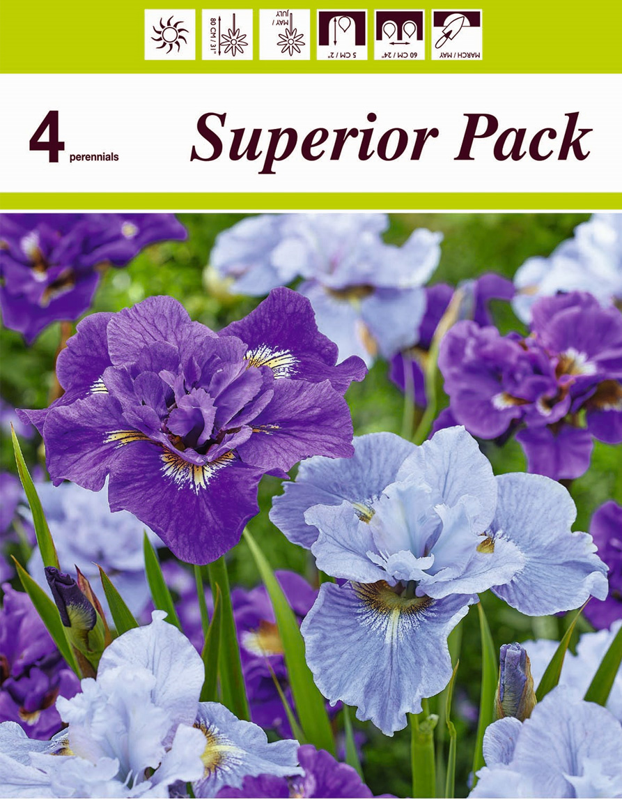 - Mukana: 4 siperian iiriksen juurakkoa (sinisen ja violetin eri sävyjä).