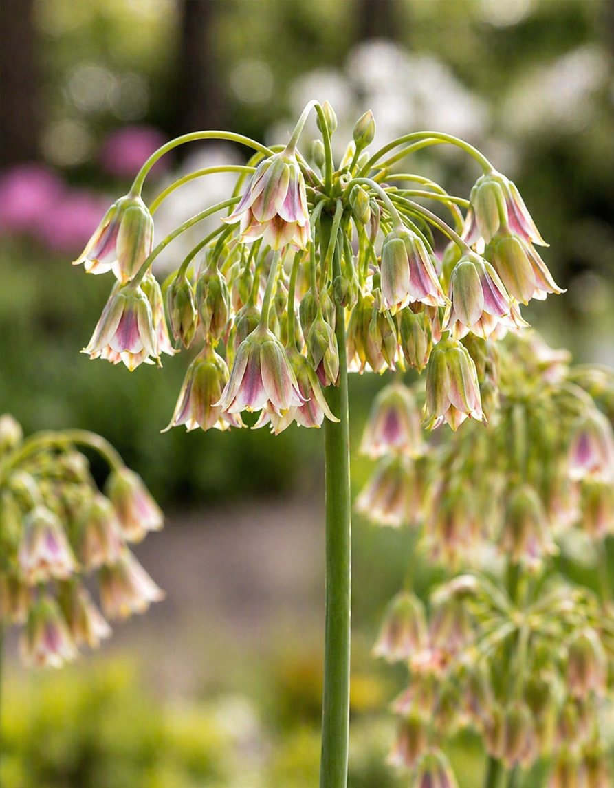 Sisilianlaukka on erikoinen ja hienostuneen luonnollinen sipulikukka, joka tuo istutuksiin keveyttä ja persoonallista ilmettä. Korkeiden, sirojen varsien päissä riippuvat kellomaiset kukat, joissa yhdistyvät kermanvalkoiset, vihertävät ja hennon roosanvioletit sävyt. Lopputulos on hillitty, mutta todella kaunis — täydellinen luonnonmukaisiin istutuksiin, cottage garden -tyylisiin penkkeihin ja perennojen joukkoon.