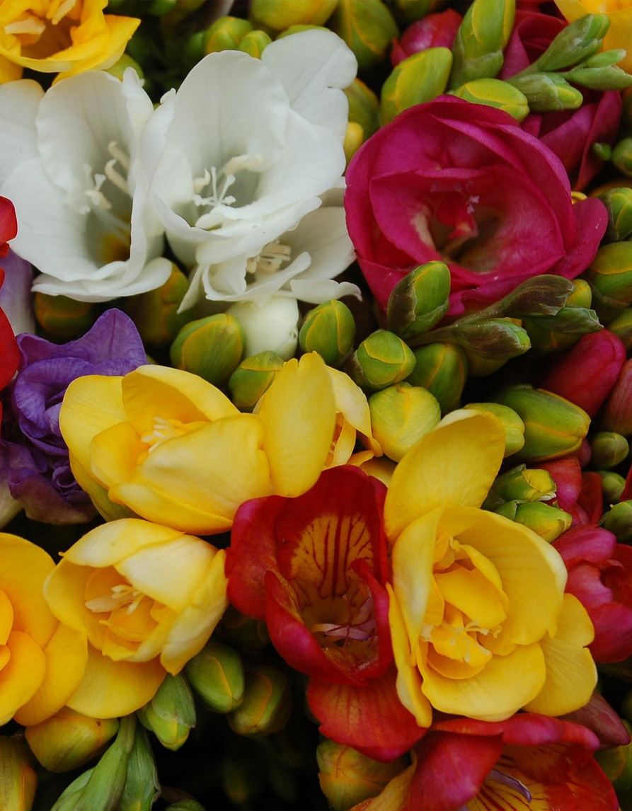 Verrattain tuoksuva ja kauniin värikäs freesiasekoitus tuo kesään eleganssia ja raikkautta. Sekoitus sisältää täyskukkaisia freesioita eri sävyissä - valkoista, keltaista, vaaleanpunaista, punaista ja violettia - jotka avautuvat keskikesällä ja sopivat erinomaisesti kukkapenkkiin tai leikkokukiksi maljakkoon.