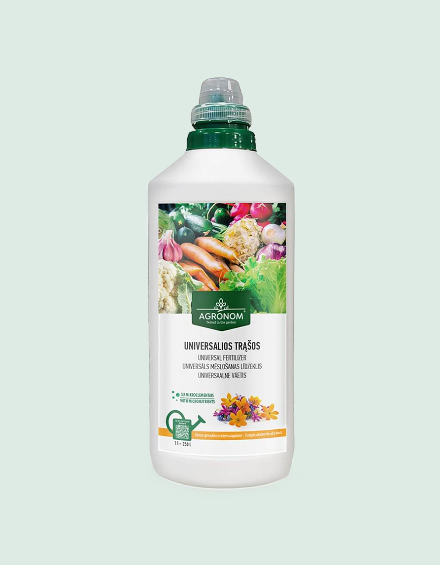 AGRONOM Universal nestemäinen täyteaine on kätevä ratkaisu kaikille puutarhureille ja kasvien ystäville, jotka haluavat yhden lannoitteen koko puutarhaan ja kotiin. Tasapainoisen NPK 7-5-6 -muodostelmansa ansiosta se antaa kasveille välttämättömiä makroravinteita, jotka tukevat nopeaa kasvua, voimakasta versojen kehitystä sekä korkeaa kukintaa ja satoa.