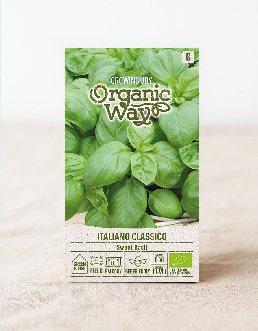 Basilika tarvitsee lämpöä ja itää nopeammin kasvihuoneessa tai sisätiloissa. Liiallinen pakkanen haittaa kasvua, joten istuta ulos yöpakkasten jälkeen. Säännöllinen lehtien nipistely edistää itämistä ja rehevämpää satoa. Ekologisesti tuotetut siemenet.