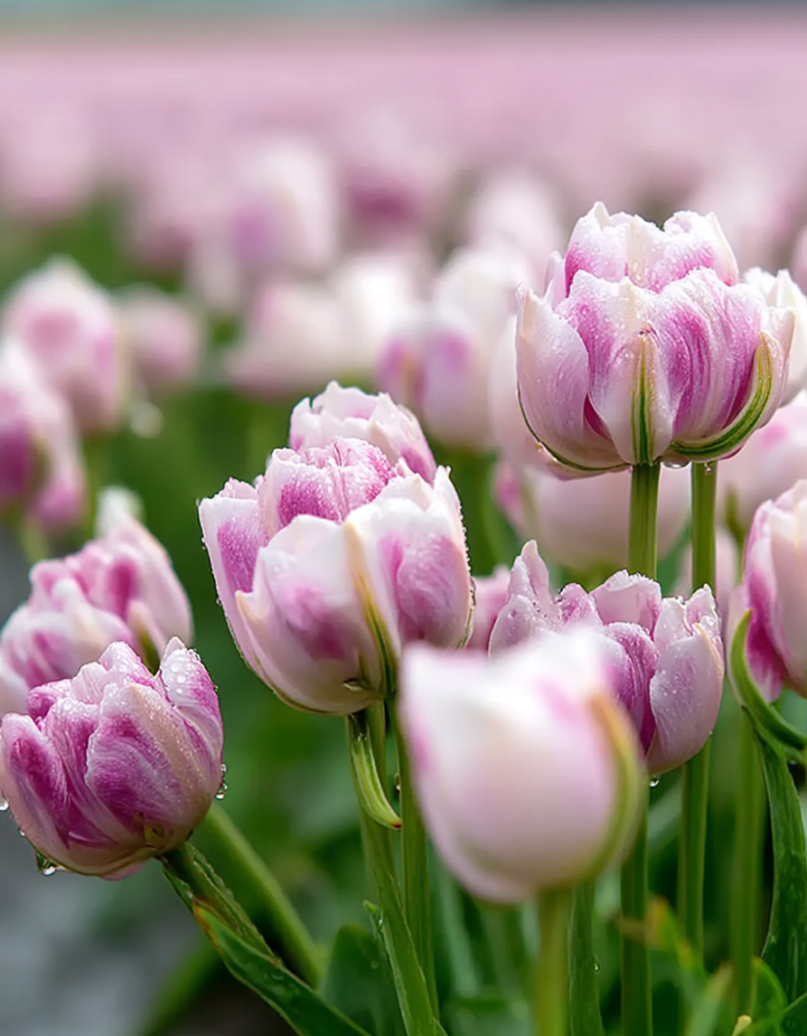 Kerrannainen myöhäinen tulppaani ‘Double Surprise’ 5 kpl on elegantti ja romanttinen tulppaanilajike, რომლის suuret ja tiheästi kerrotut kukat muistuttavat lähes pioneja. Kukan väri on herkkä ja ylellinen – valkoisenvaaleanpunaisella pohjalla on liilanroosan sävyjä, jotka antavat lajikkeelle erityisen hienostuneen ja näyttävän ilmeen.