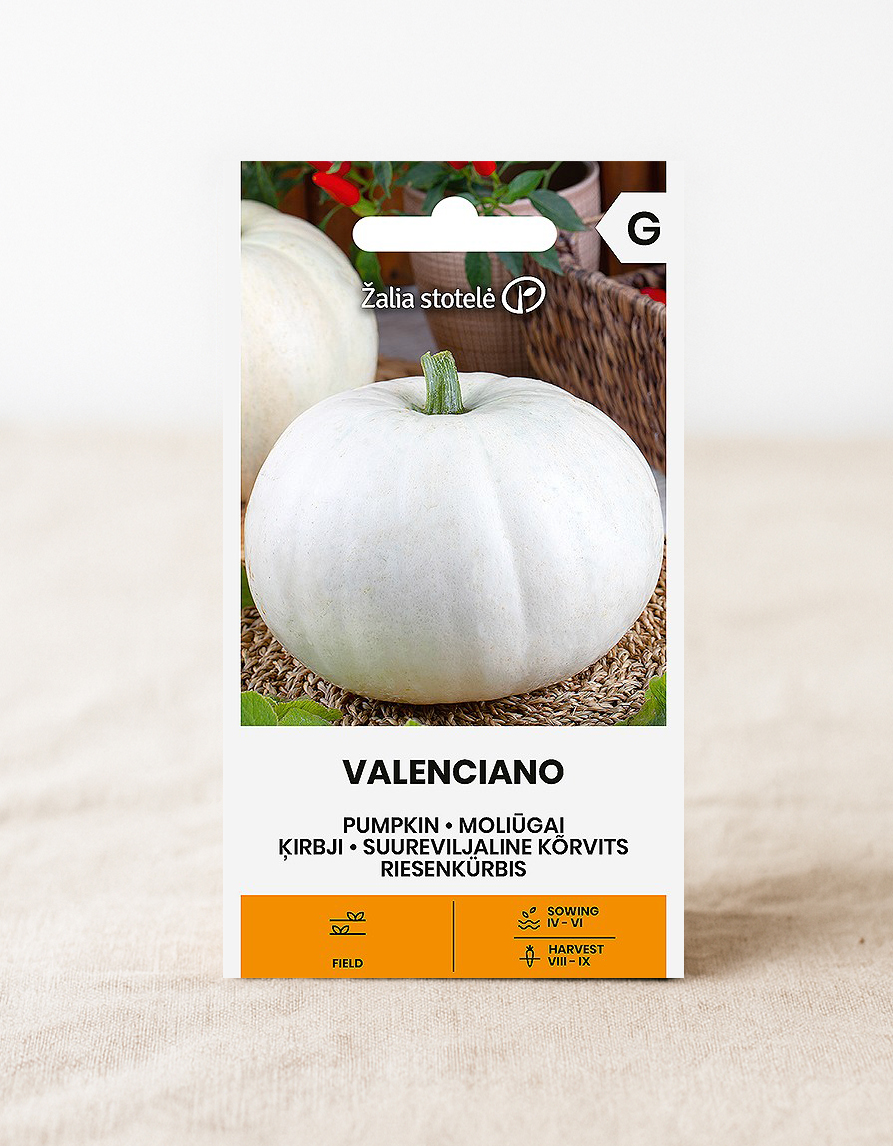 ”Valenciano” on koristeellinen ja maukas kurpitsalajike, jonka hedelmät ovat pyöreitä, hieman litistyneitä ja kauniisti suonisia. Hedelmillä on vaalea, lähes valkoinen kuori ja rikas oranssi malto. Yhden hedelmän paino on 4–5 kiloa. Kasvukausi on noin 110 päivää.