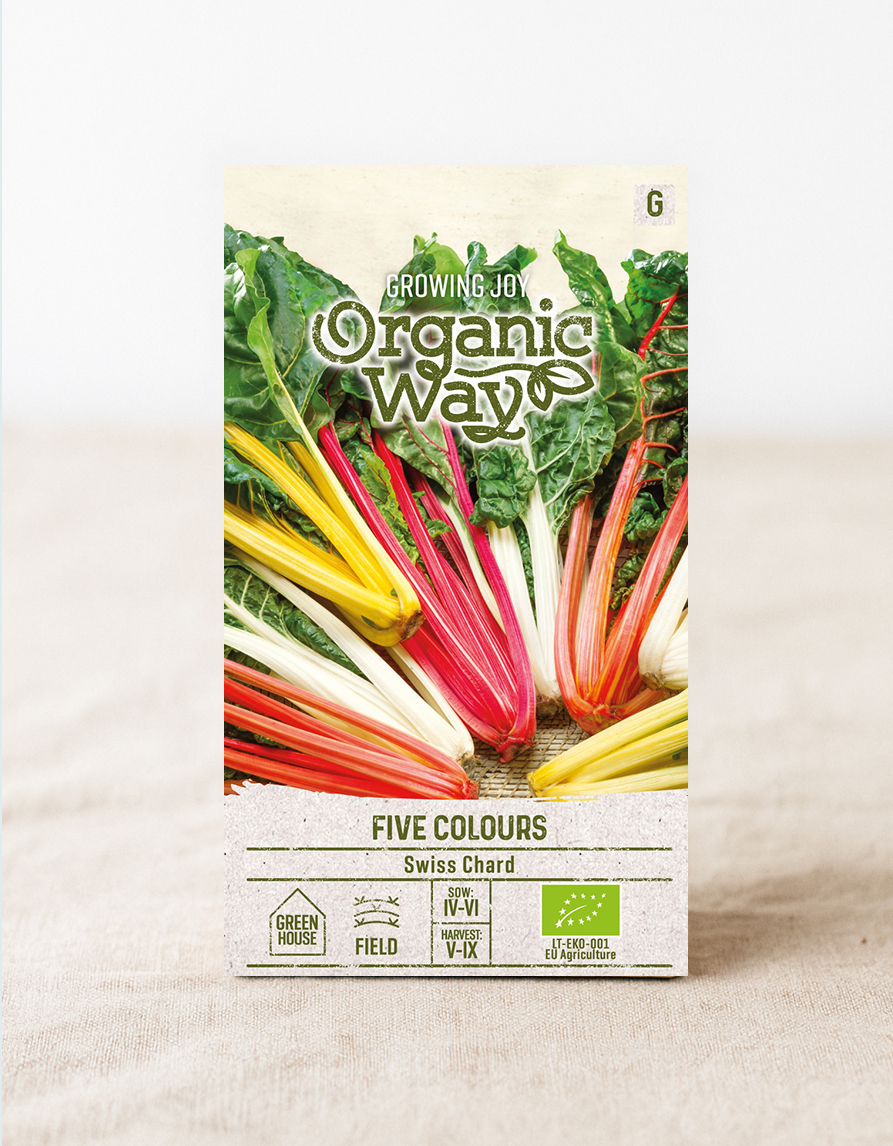 Five Colors“ on värikäs sekoitus useista eri varren mangoldilajikkeista - varret ja lehdet voivat olla keltaisia, oransseja, punaisia, vaaleanpunaisia tai valkoisia. Kasvi kypsyy nopeasti, ja sato saadaan jo 50-60 päivän kuluttua kylvöstä. Sopii sekä kesä- että syyskylvöön, ja satoa voidaan korjata myöhään syksyyn asti.