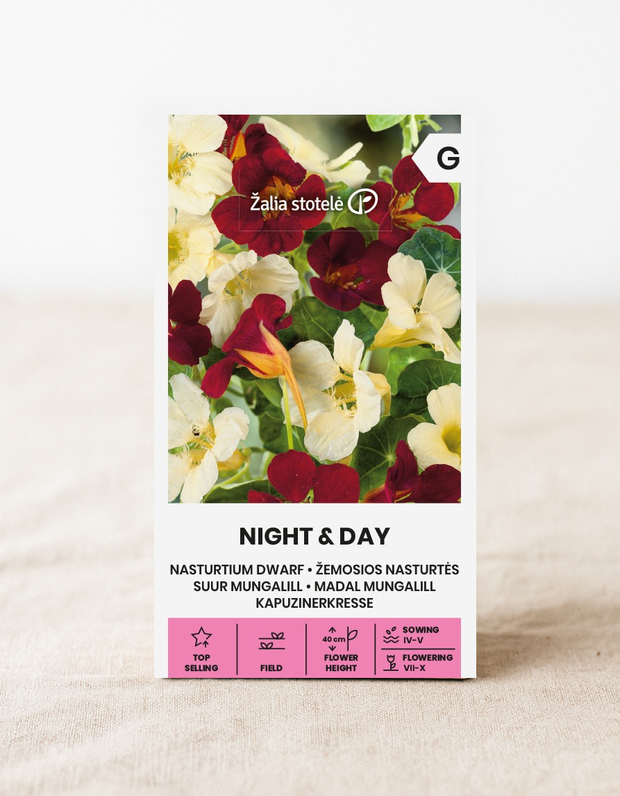‘Night & Day’ on matala, helppokasvuinen sienikukka, joka kasvaa noin 40 cm:n pituiseksi ja ihastuttaa alkukesästä myöhään syksyyn. Lajikkeen tunnusomainen piirre on kontrastiset kukat - toiset ovat kermanvalkoisia, toiset syvän tummia, lähes mustia. Kukat ovat halkaisijaltaan 4-5 cm, ja kasvi sopii hyvin reunustuksiin, ikkunalaatikoihin ja terassiruukkuihin.