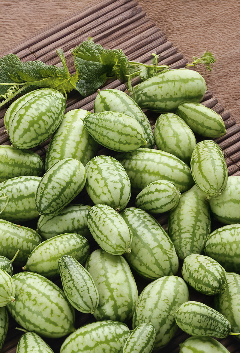 Nopeakasvuinen ja maukas pieni kurkku, jota voi nauttia tuoreena, marinoituna tai salaatteihin lisättynä. Sen maku muistuttaa kurkkua, mutta se on pienempi ja makeampi. Se kasvaa nopeasti ja saavuttaa 3-5 metrin korkeuden, joten se on ihanteellinen köynnöstävä kasvi, joka tarvitsee tukea tai seinän. Meksikolaiset kurkut ovat hyvin tuottavia, ja ne tuottavat runsaasti 5-10 g:n painoisia hedelmiä. Sitä voidaan kasvattaa kasvihuoneessa, parvekkeella tai ulkona aurinkoisessa ja tuulelta suojatussa paikassa. Kasvi on hyvin koristeellinen, muistuttaa kesäkurpitsaa, ja hedelmien lisäksi koko kasvi on koristeellinen elementti. Itsekukintainen - seuraavana vuonna se kukkii entisellä paikallaan, jos se jätetään kukinnan jälkeen. Sopii kasvihuoneisiin, puutarhaprojekteihin ja pieniin puutarhamaisemiin.