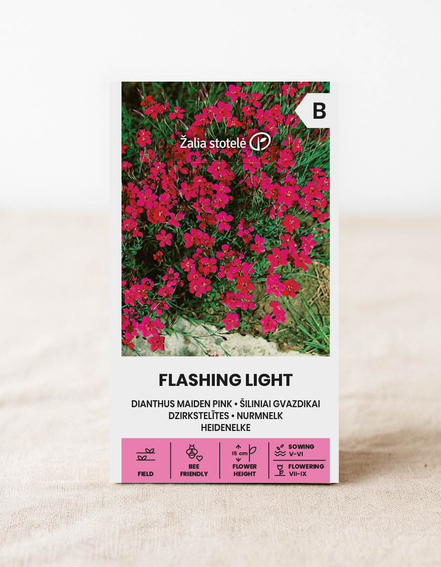 Neilikan siemenet “Flashing Light” tarjoavat erinomaisen tilaisuuden koristella kukkapenkkejä, kivikkotarhoja tai hautapaikkoja matalalla, tiheällä ja miellyttävän tuoksuisella kukkamatolla. Kasvi kasvaa vain 15 cm korkeaksi ja muodostaa matalia tyynyjä, jotka kukkivat vaaleanpunaisilla, miellyttävän tuoksuisilla kukilla keskikesästä syksyyn.