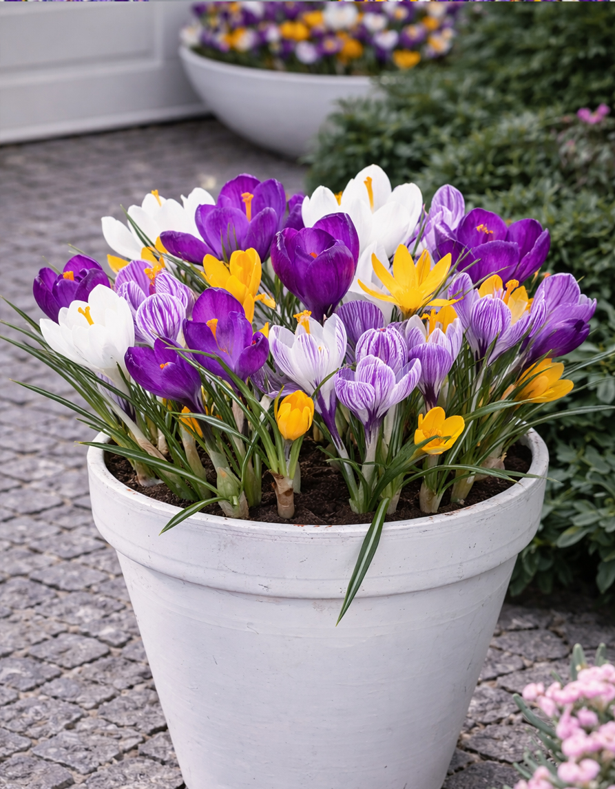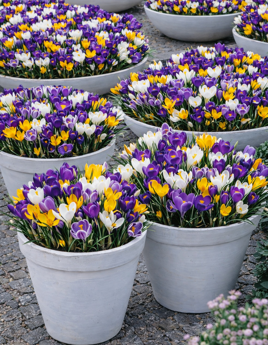 Suurikukkaisten krookusten sekoitus tarjoaa värikkään keväisen kukkaloiston, joka tuo puutarhaan elämää ja iloa jo varhain keväällä. Seos sisältää eri sävyisiä krookuksia – valkoisia, keltaisia, violetteja ja raidallisia kukkia – luoden lumoavan väripaletin, joka herää eloon heti, kun lumi alkaa sulaa. Krookukset tunnetaan varhaisesta kukinnastaan ja kestävyydestään, mikä tekee niistä erinomaisen valinnan niin kukkapenkkeihin kuin nurmialueille luonnollista ilmettä luomaan.